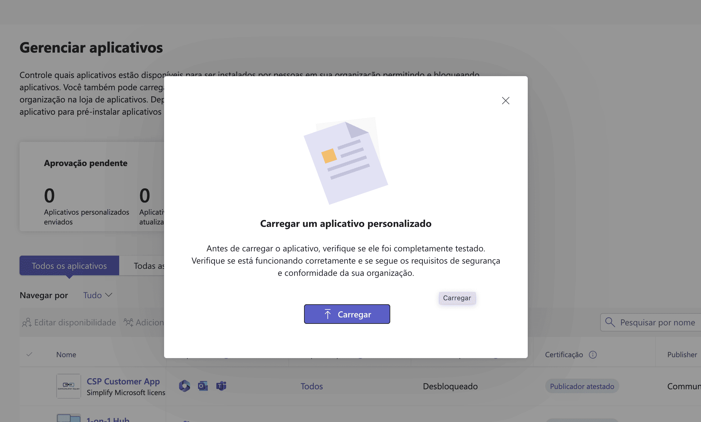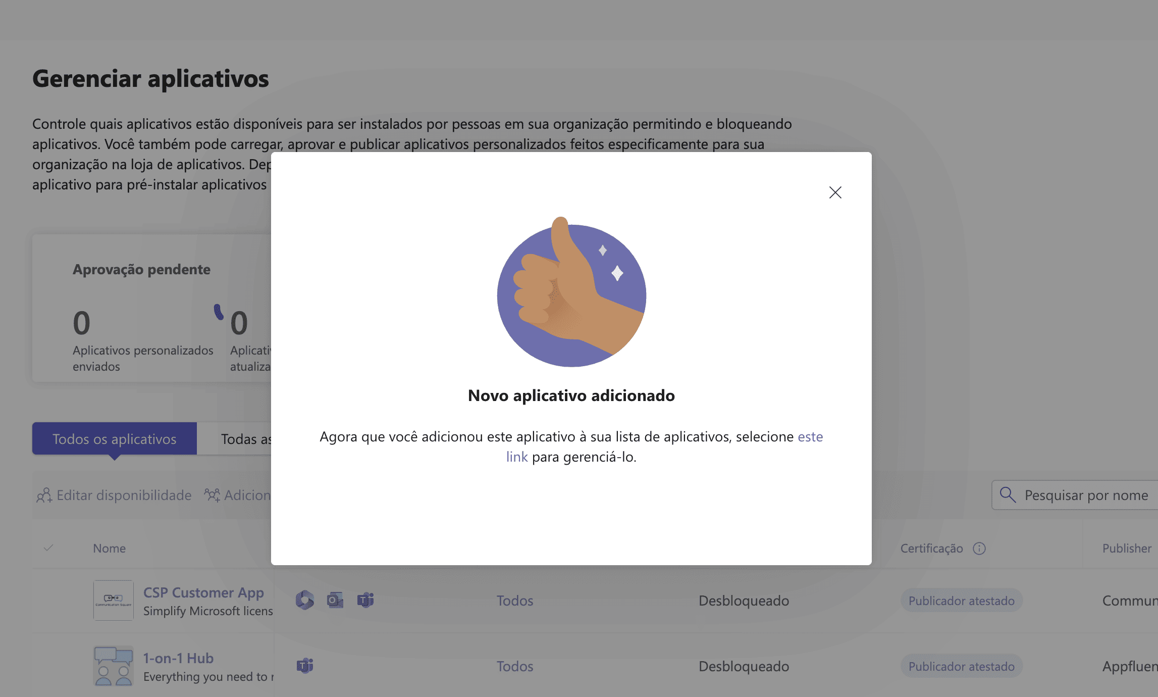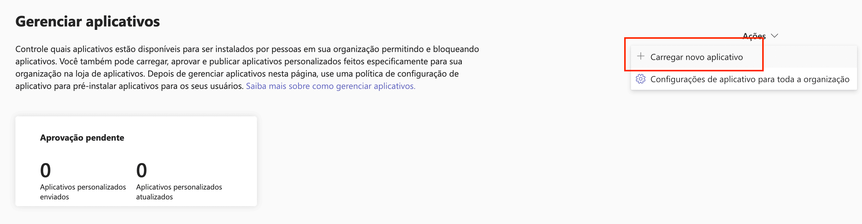 Acesse o painel de Gerenciar Aplicativos, utilizando uma conta de administrador do ambiente do Teams.